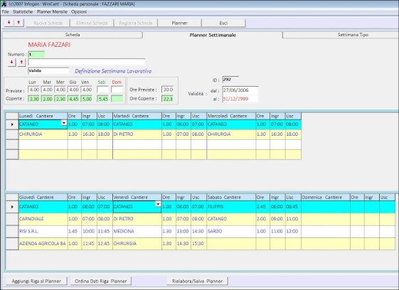 Con Wincant è possibile definire un planner su diversi mesi delle presenze sui vari cantieri. In questo modo è possibile individuare eventuali criticità, dovute a ferie, permessi, malattie o infortuni, e sopperire riorganizzando gli spostamenti.