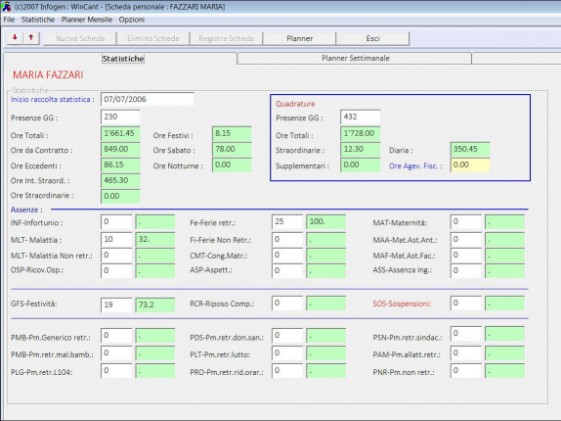 Con WinCant è possibile gestire la compilazione automatica del cartellino mensile per ciascun dipendente, con un’accuratezza del quasi 100%.
